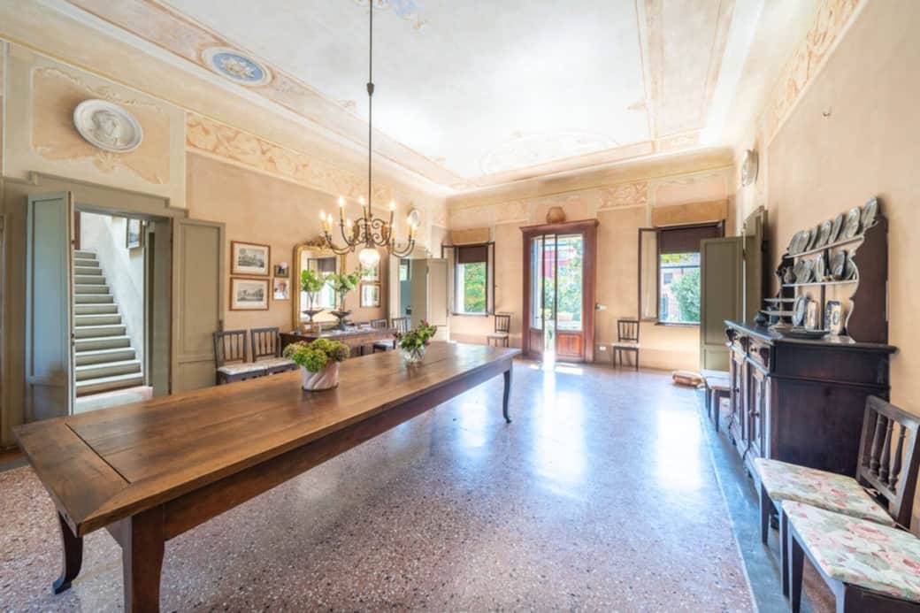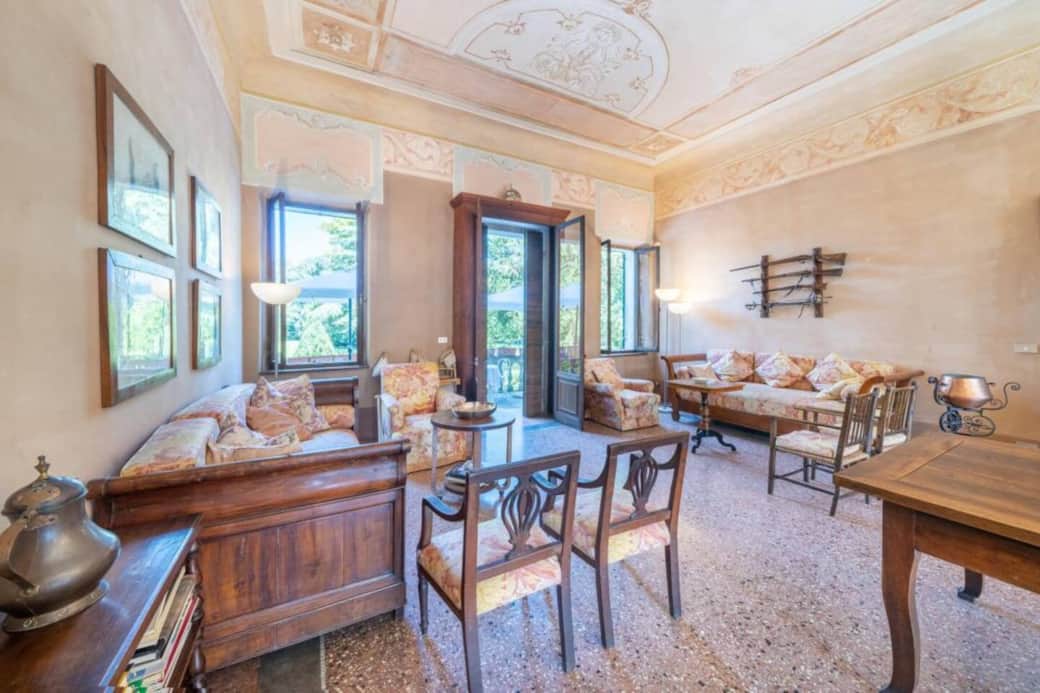 Die venezianische Villa in der Nähe von Verona bietet genügend Platz für 13 Erwachsene und 4 Kinder. So kann Oma Olga und Dackel Dino auch noch mit.
